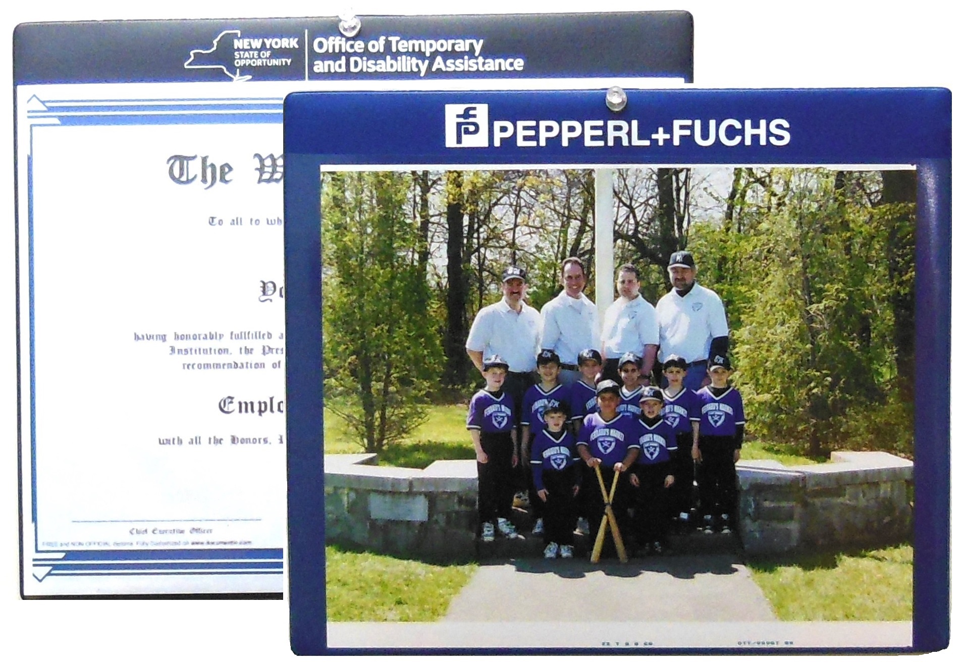 Heavy duty construction with a rigid chipboard and a metal rivet for hanging your well-earned Certificate or Favorite Picture.