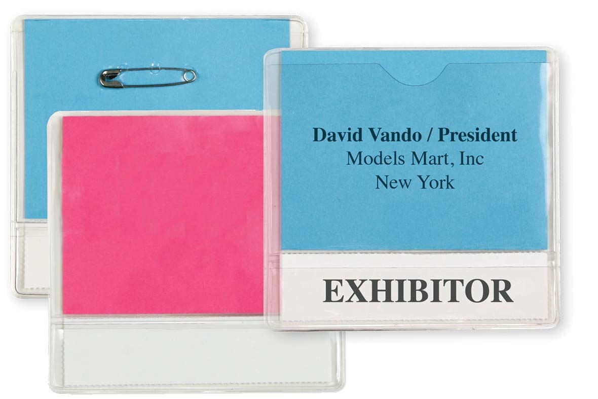 Lower pocket holds 3″ x 1″ strip for titles, group, special messages, etc.