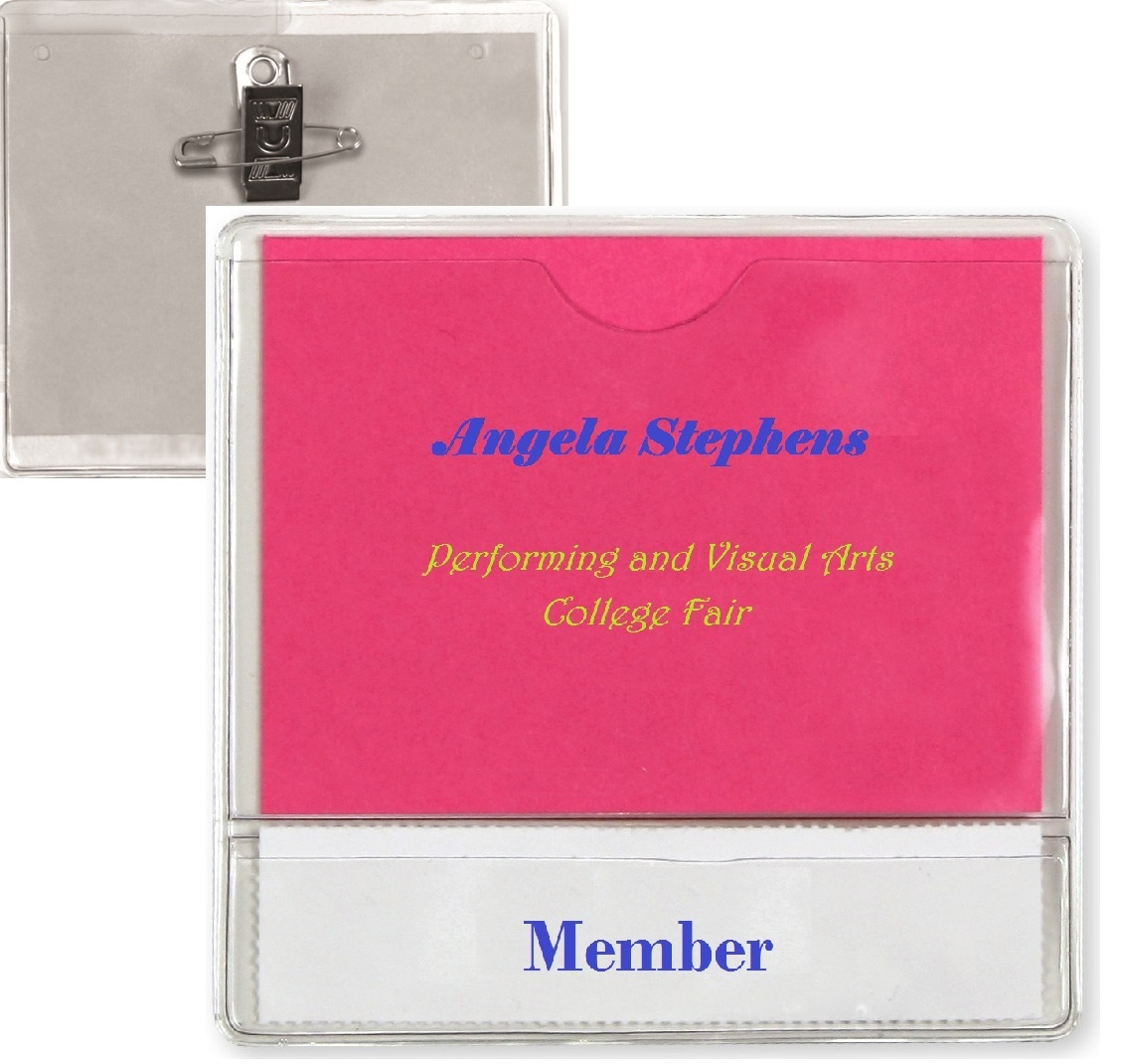 Style: 02432 Standard Twin Style Badge Holders with Pin Attachment. For Multi-Purpose Attendees. Fits Standard Size insert 3 1/8″ x 1 7/8″